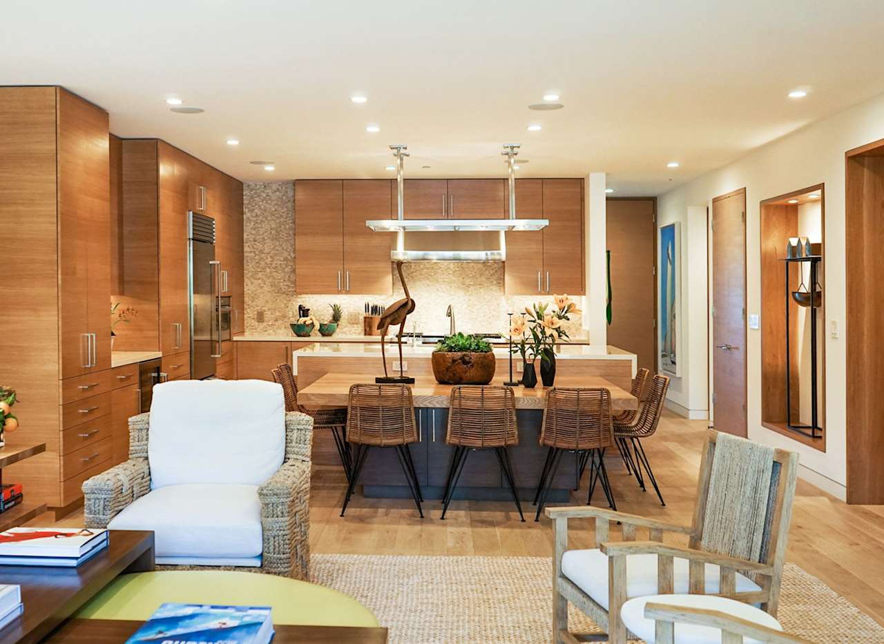 Spectacular ocean view, single level, ground floor, 3 bed / 3 full bath condo. The unit was remodeled to the studs with every luxury and convenience added. Fabulous contemporary floor-plan with ocean view living room, dining room open to custom chef’s kitchen. Floor to ceiling cabinetry, extensive recessed and custom lighting, travertine, white oak, and tile finishes are carried throughout. Bedrooms have ample storage and thoughtfully designed work, study, media spaces.