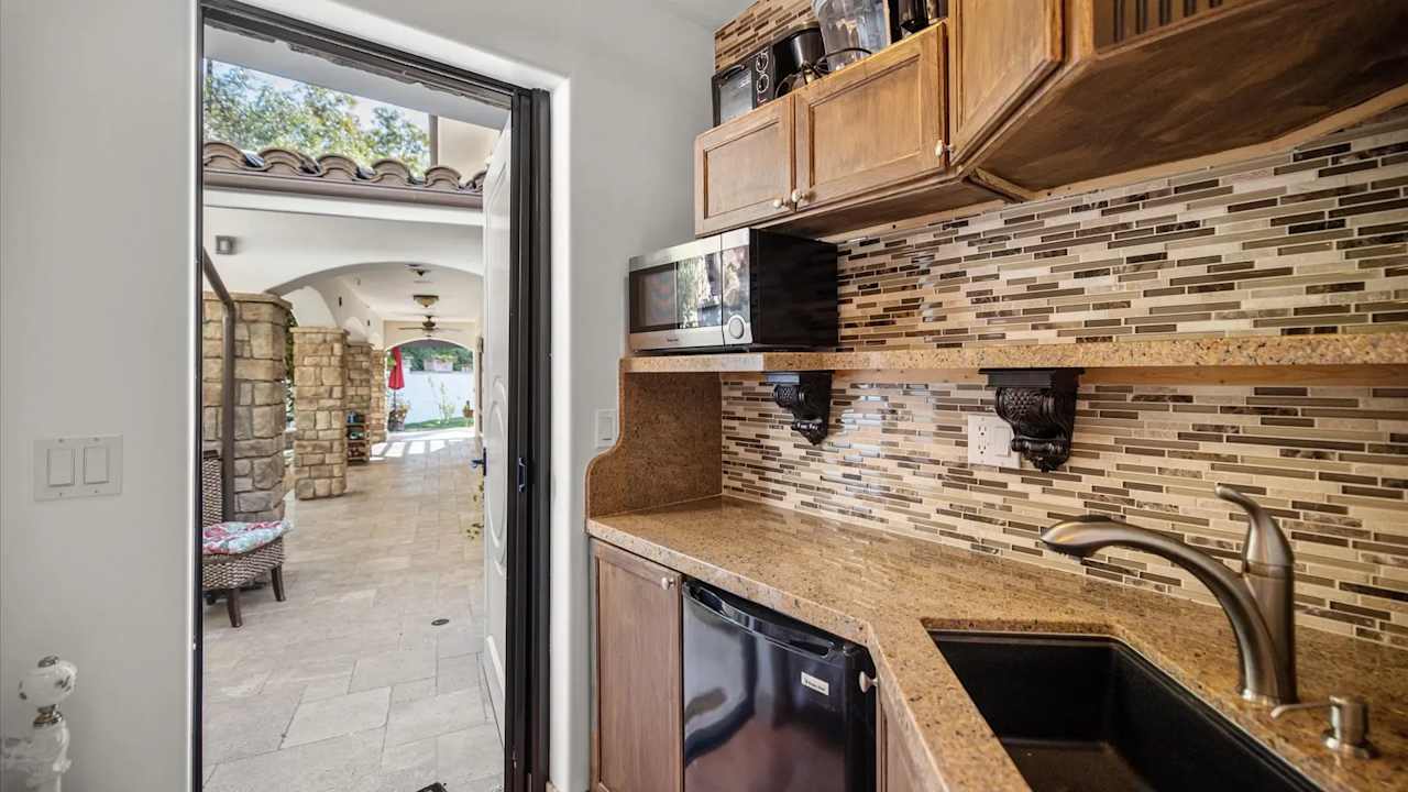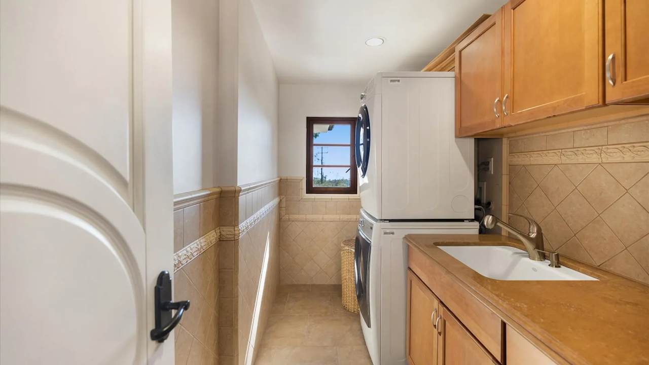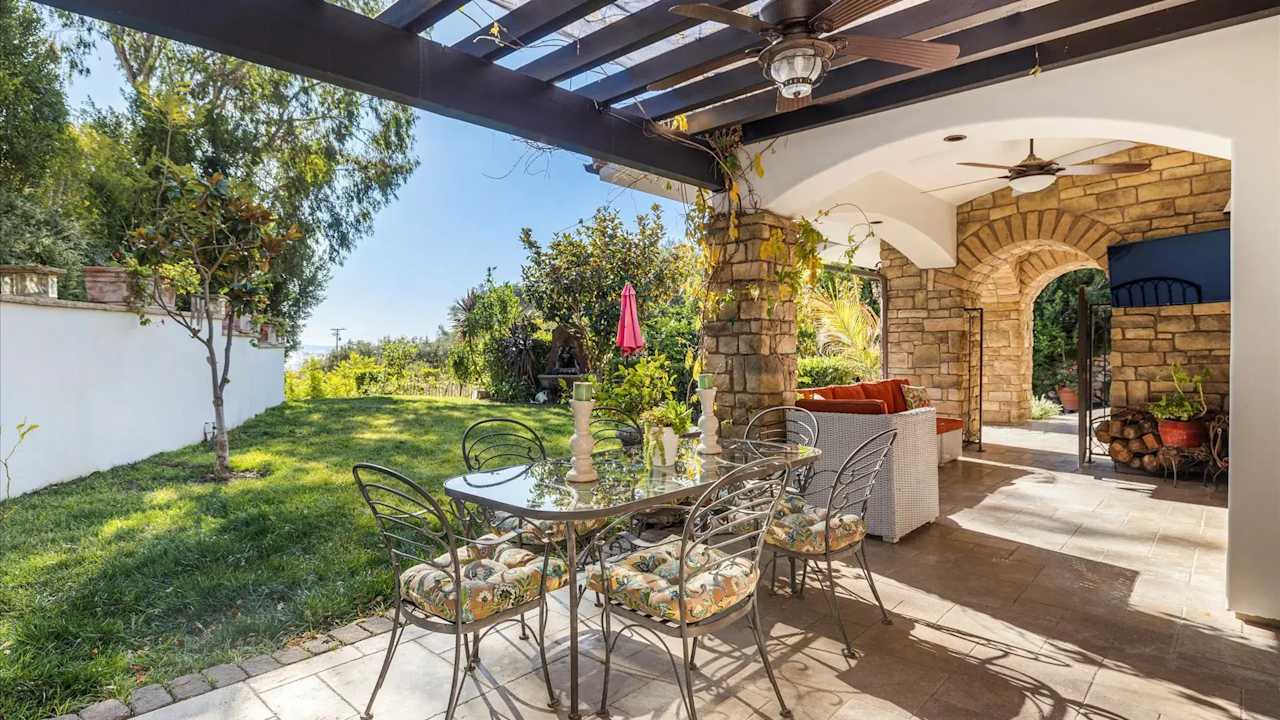 Incredible value for this Montecito ocean view custom Italian Villa. You will feel like you’re in Sicily in this 3,272 SF stone estate home’s open gourmet kitchen/dining/living room opening to the front yard that is pre-plumbed for an ocean view pool. Upstairs has 3 bedroom suites each with large balconies and private baths. The master suite has an office, walk-in closet, separate shower and jet air tub, double vanity w/ additional makeup counter, and covered balcony overlooking the ocean. The third BD has its own kitchenette and exterior entrance. Outdoors has 2,400 SF of covered patios w/ water + electricity, and an outdoor kitchen featuring a smoker, grill, cooktop, wine chiller, sink, pizza oven, fridge and counters. There is a guest unit plus room for ADU.