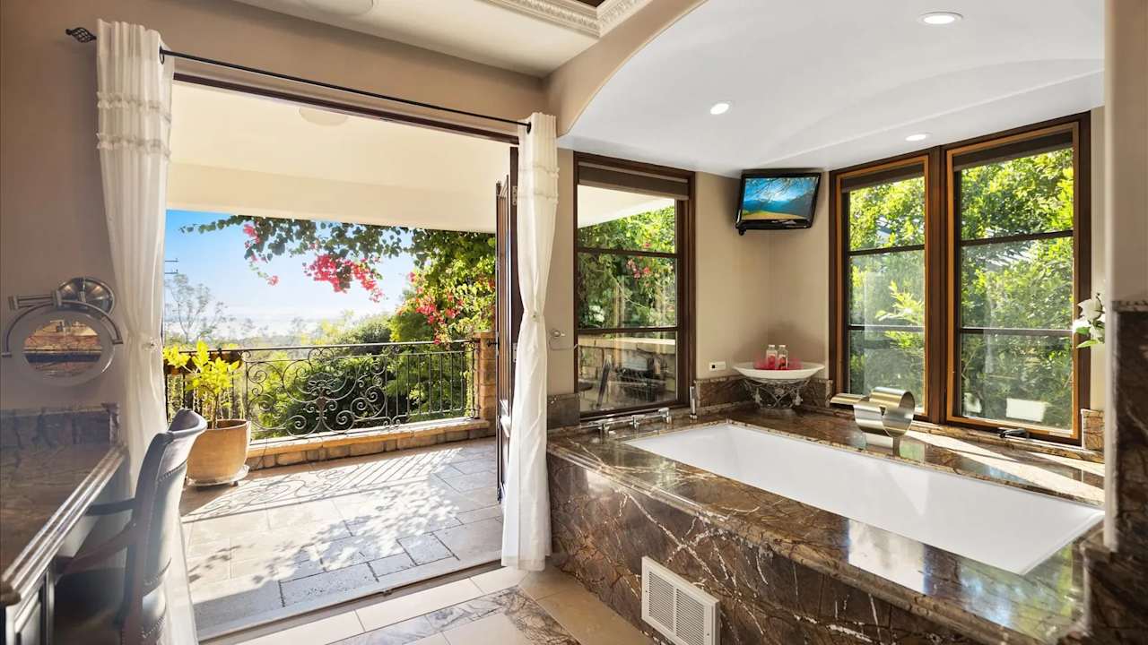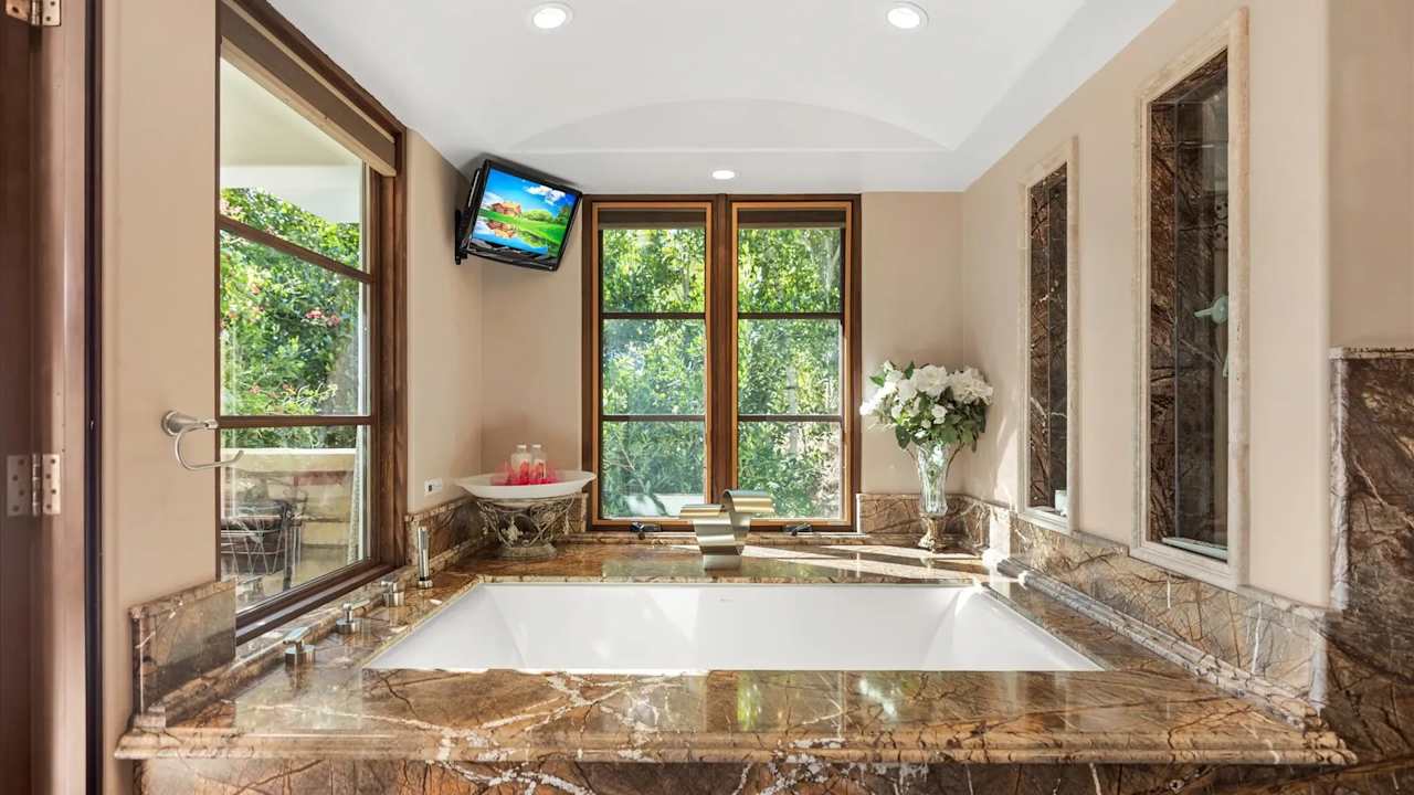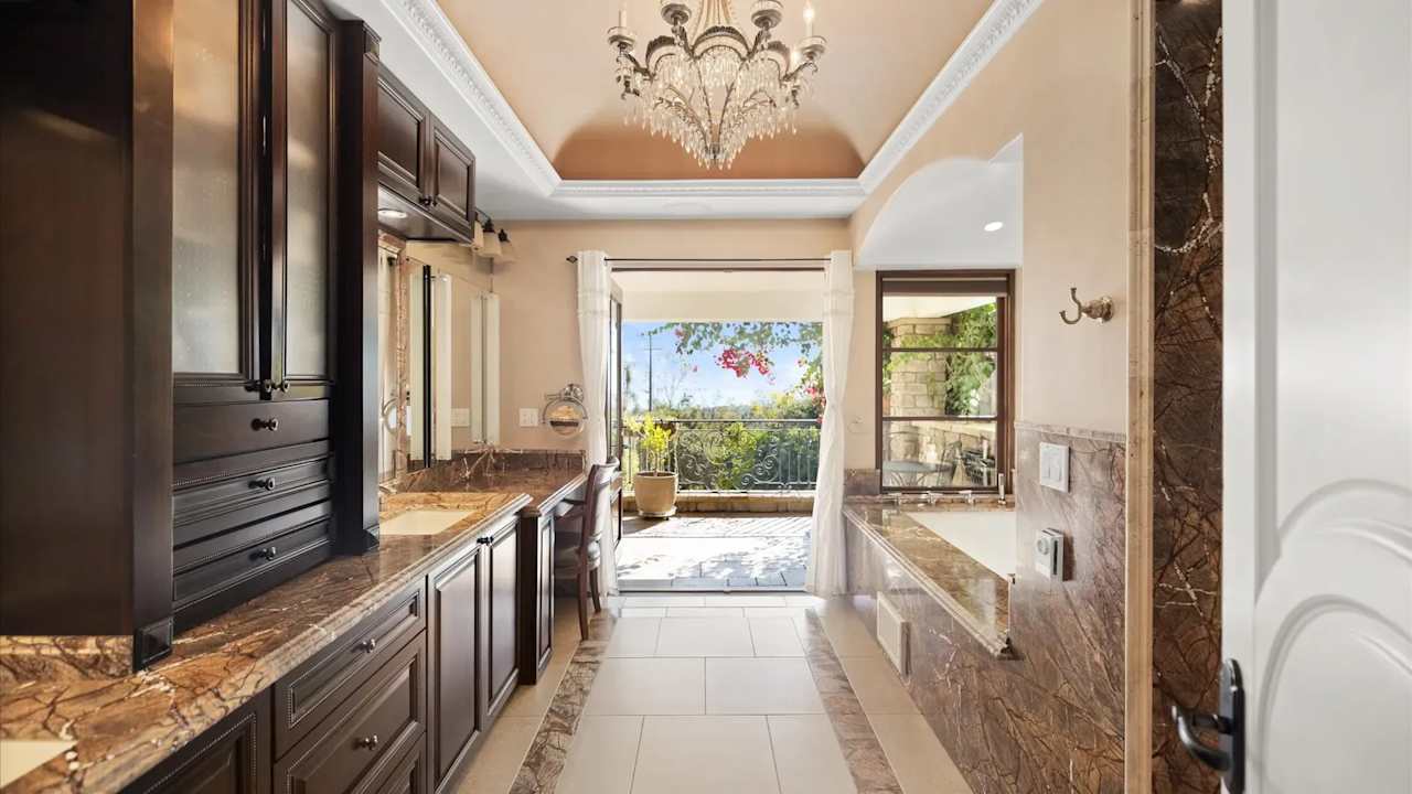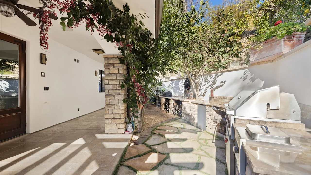 Incredible value for this Montecito ocean view custom Italian Villa. You will feel like you’re in Sicily in this 3,272 SF stone estate home’s open gourmet kitchen/dining/living room opening to the front yard that is pre-plumbed for an ocean view pool. Upstairs has 3 bedroom suites each with large balconies and private baths. The master suite has an office, walk-in closet, separate shower and jet air tub, double vanity w/ additional makeup counter, and covered balcony overlooking the ocean. The third BD has its own kitchenette and exterior entrance. Outdoors has 2,400 SF of covered patios w/ water + electricity, and an outdoor kitchen featuring a smoker, grill, cooktop, wine chiller, sink, pizza oven, fridge and counters. There is a guest unit plus room for ADU.