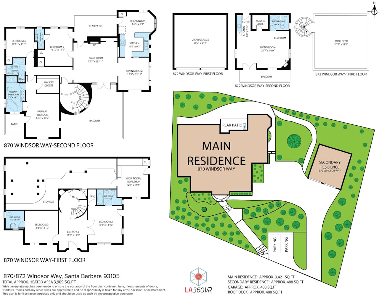 The separate second residence has its own address, 872 Windsor Way. This detached ADU retains the same style and elegance as the main residence. It features 1 bedroom and 1 bathroom. It has a complete yet efficient kitchen, beautiful wood floors, spacious walk-in closet, fireplace and breathtaking views. A natural stone pathway leads to its own separate entrance with private yards. Its rooftop deck is absolutely awe-inspiring. Incredible panoramic views and a perfect space for entertaining guests or simply enjoying a quiet evening at home watching the sunset or sitting under the stars.