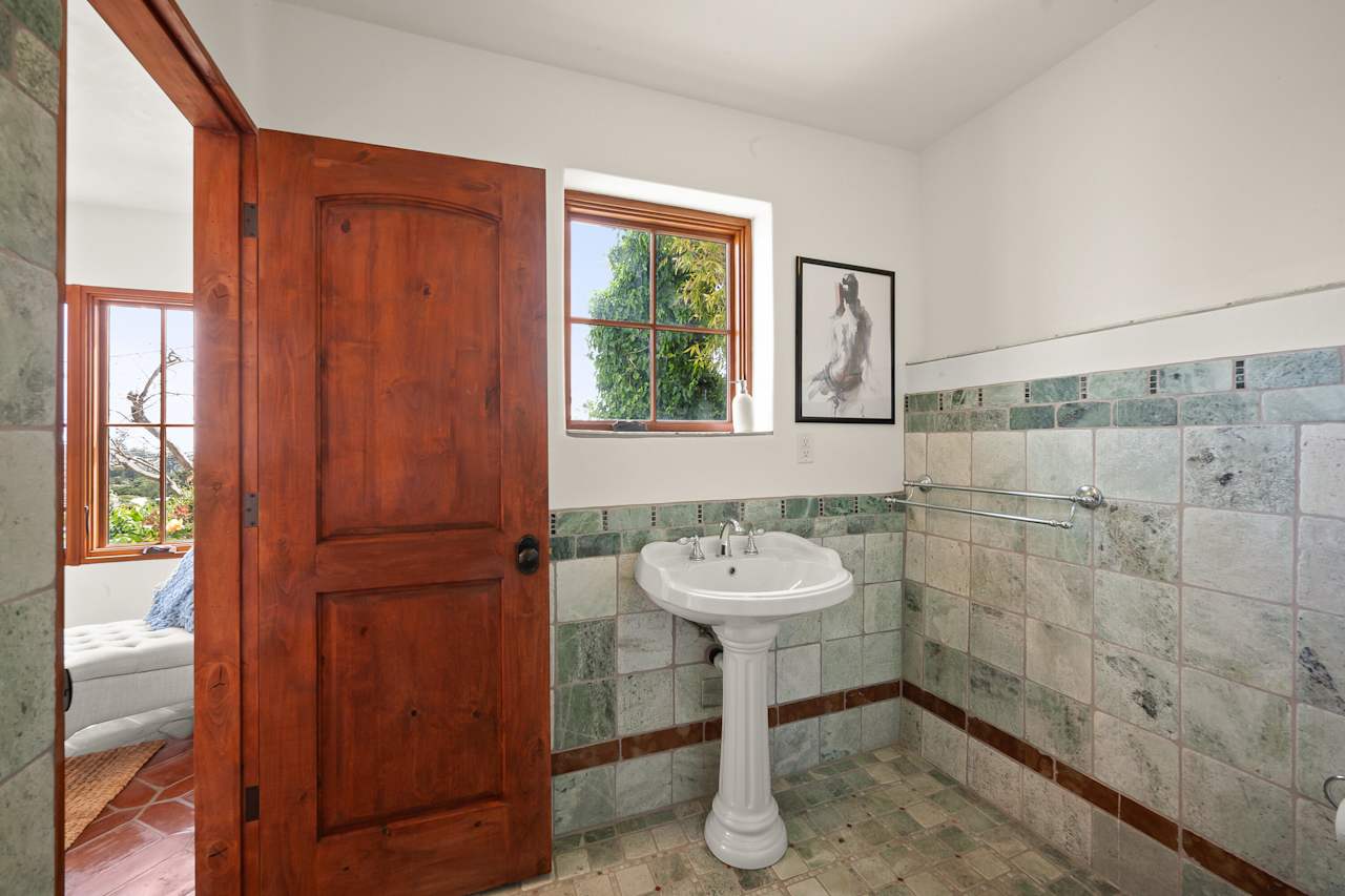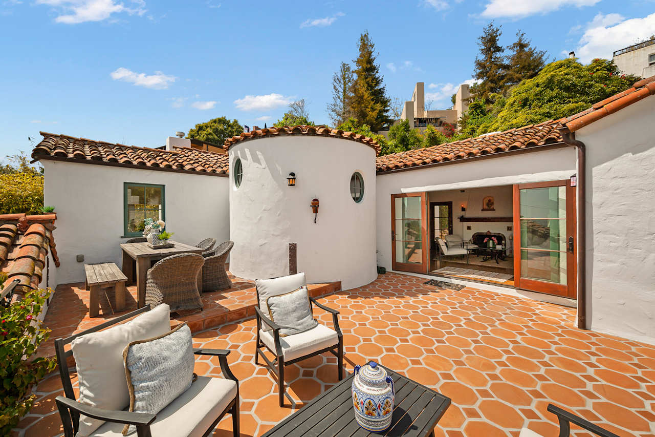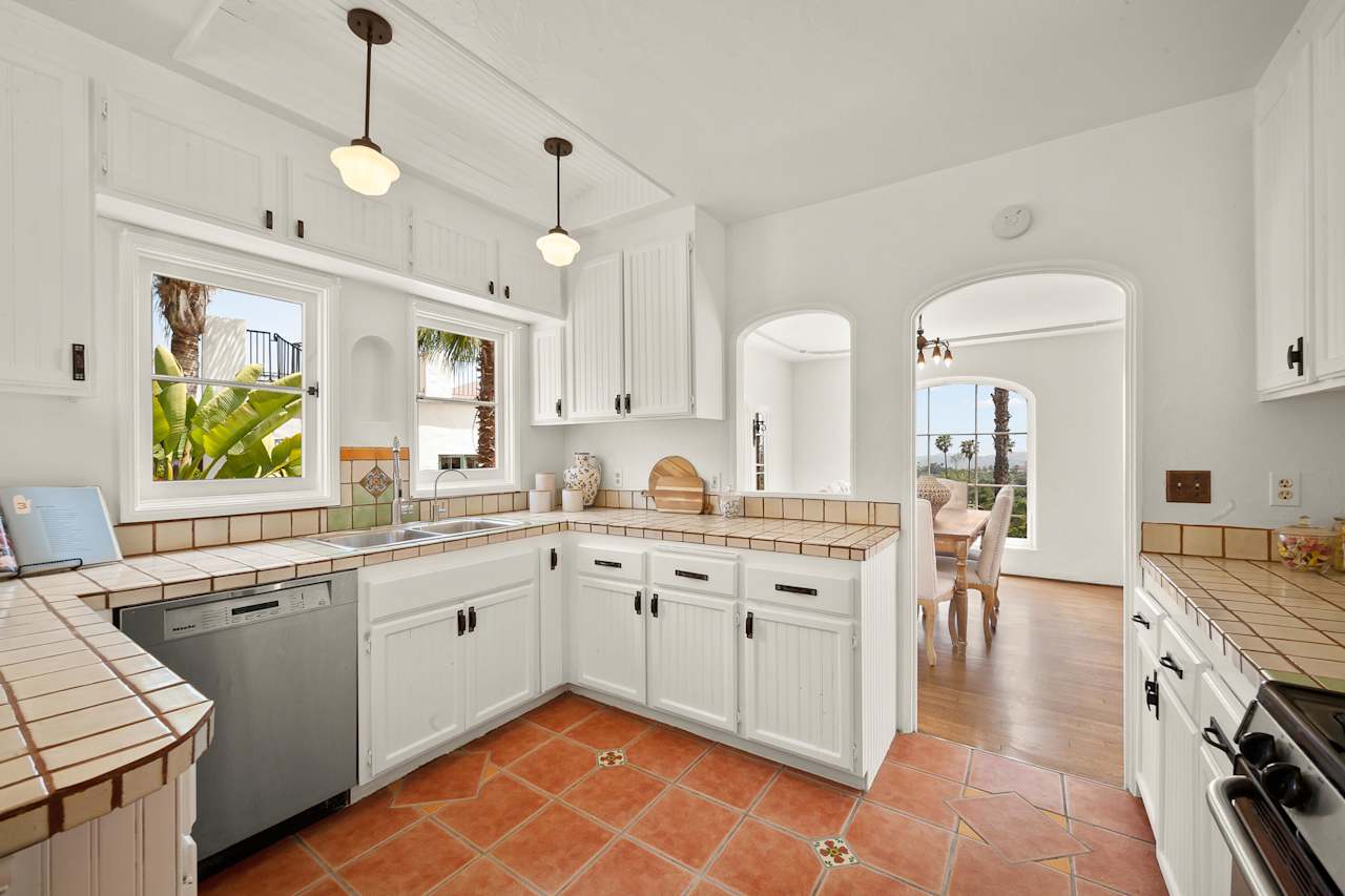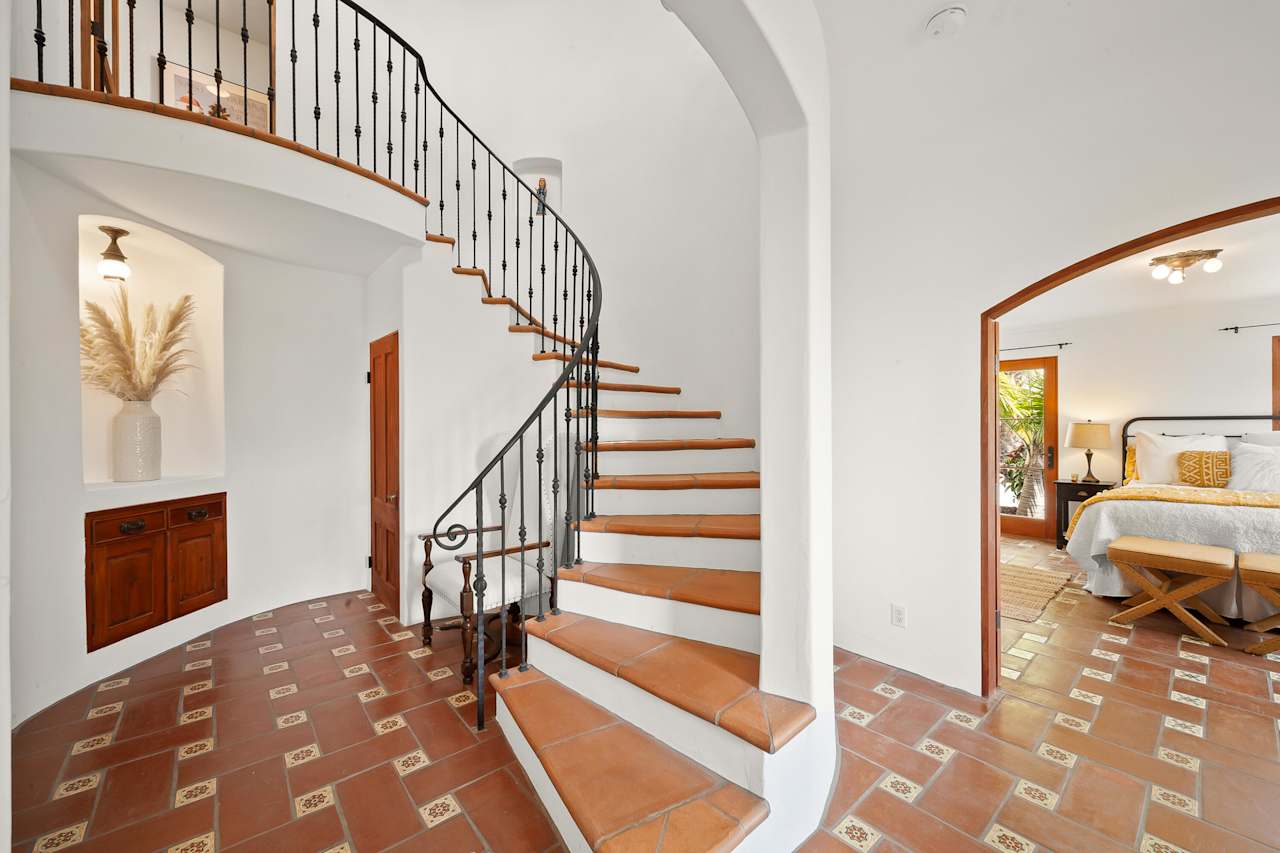 The Queen of Mission Canyon. This unique, classically restored Spanish Revival property was built in 1930 as one of the first homes in Mission Canyon. Perched above a quiet cul de sac street with spectacular views of the ocean, islands, and St. Anthony’s Seminary. Thoughtfully updated to meet modern standards while retaining its original charm and character. Renovated in the style of George Washington Smith with decorative terracotta tiles, hardwood floors, robust ironwork, rare time period light fixtures, and antique roof tiles.