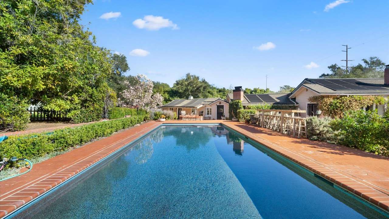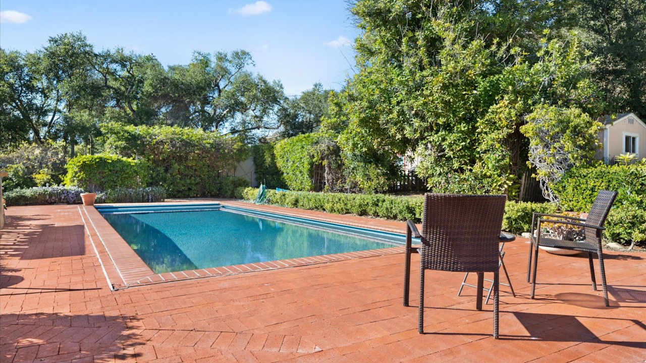 This Montecito compound in a highly desirable location directly behind Montecito Union School and adjacent to Manning Park offers unlimited possibility! Three homes on one lot include a 3 bedroom, 2 bathroom single story main house plus two 1 bedroom, 1 bathroom single story guest houses all with fireplaces. The large solar heated pool, outbuildings including sheds with electricity, 1 car garage off easement to the west, 2 car carport, flat usable 3/4 acre lot, private gate, and numerous fruit and flowering trees make this a true sanctuary.
