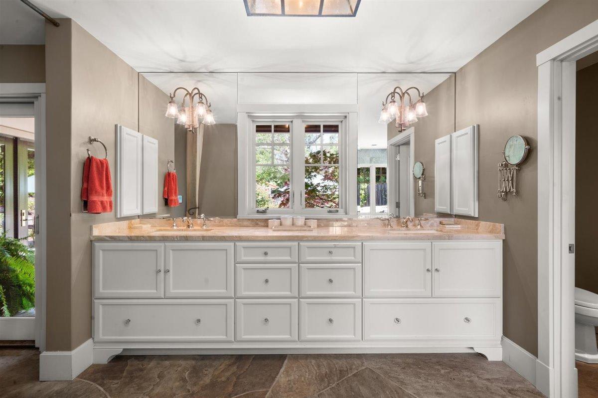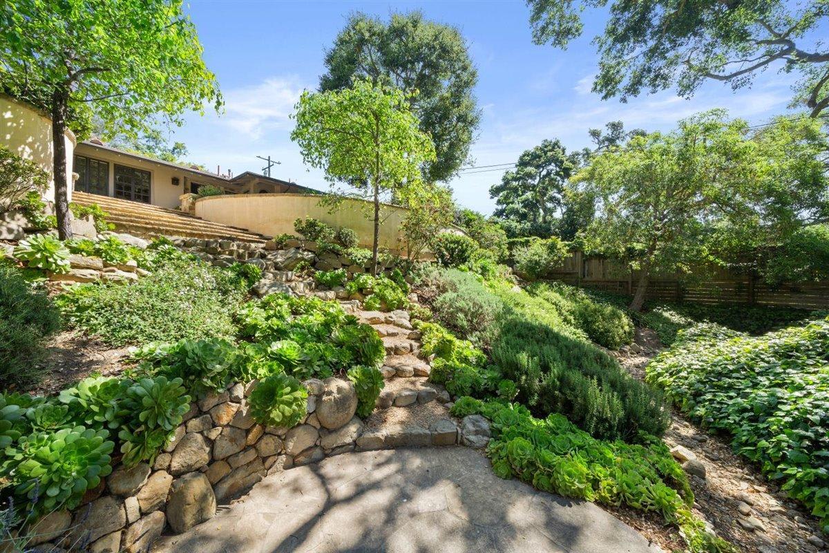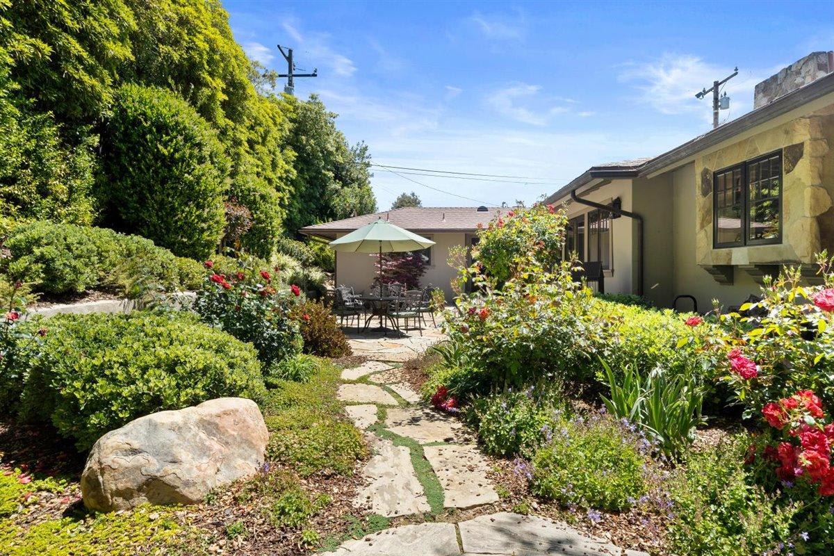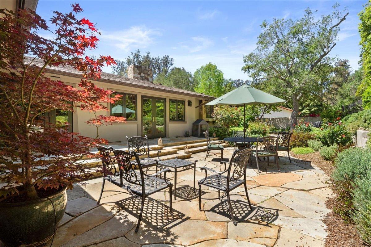 Privacy ensured at driveway entrance by oak studded swale with paths meandering past a wishing well and down plant-lined steps to an ethereal patio, inviting meditative moments while overlooking a rock lined creek bed. As perfect for entertaining as for seeking solitude. Convenient to Montecito’s upper village, lower village and the roads less traveled to Santa Barbara, this well-maintained home is designed for comfortable living and easy care, just right for the discriminating buyer.