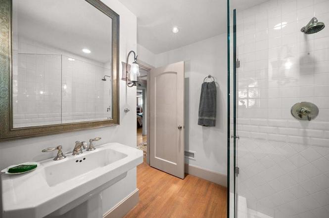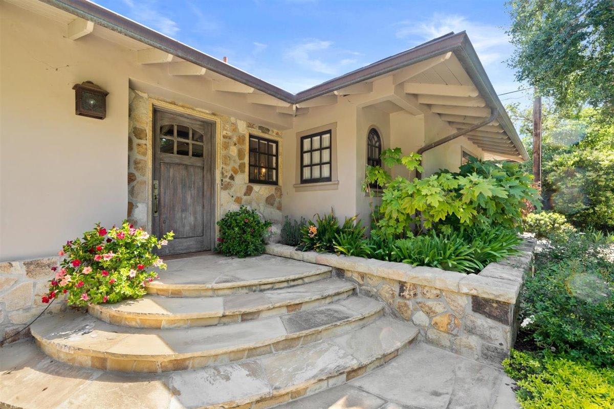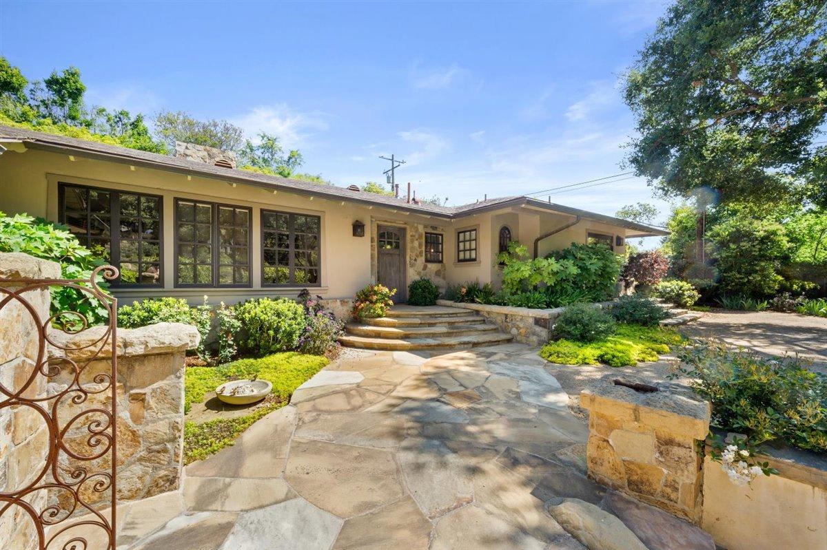 A quintessential find in Montecito. This beautifully maintained 3-bedroom, 3-bathroom Craftsman Style jewel box, completely remodeled in 2007, incorporates impeccable attention to detail throughout. Iron garden gates in the stone wall leading from the driveway draw visitors to the front door that opens into the intimacy of a booklined living room with an alcove accommodating a baby grand piano. A gourmet kitchen incorporates dining and seating by a fireplace with double doors leading to a terraced open air entertaining space that is surrounded by the fragrancy of jasmine walls and roses. The renovation added spaciousness to the three bedroom and three full bath wing of the house. The indoor/outdoor connection in each of the three rooms is underscored by glass doors opening out to the flagstone terraces that surround the house, loaning to the enjoyment of its open spaces and sun-lit garden views.